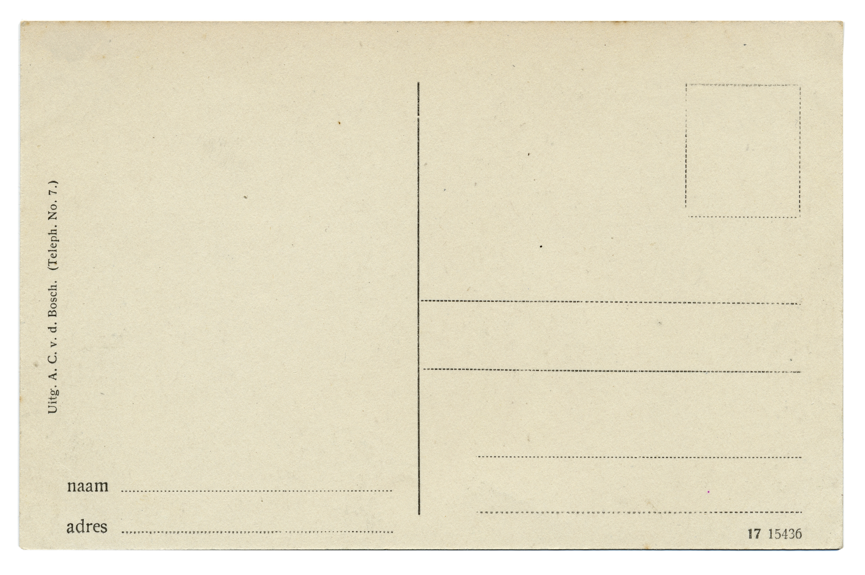 | 12 jun 2025 18:07 | 9706-B.jpg (bestand) | 1,99 MB | Dirkjankraan | == Beschrijving == '''Uitgever en producent onbekend - Adresliniatuur Type 12''' | 1 |