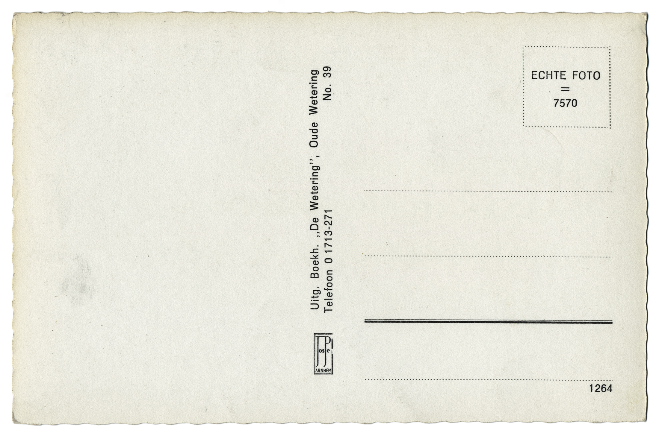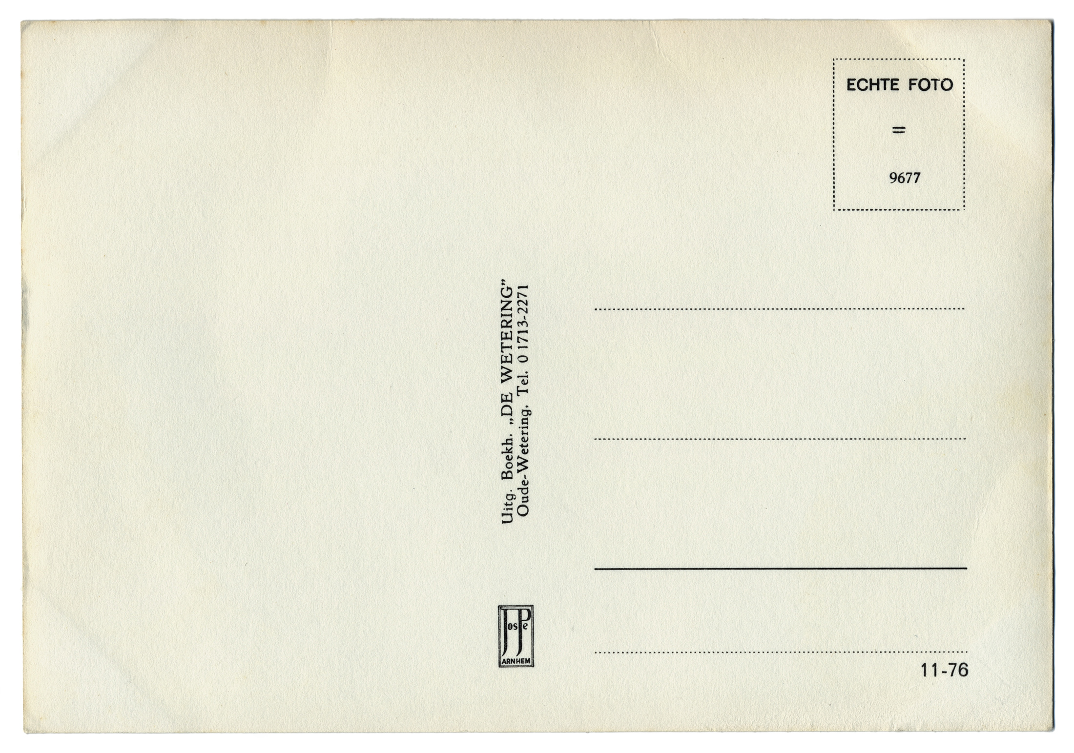 1,62 MB | '''Oude-Wetering - Overzijde''' Producent: Jospé Arnhem Uitgave: De Wetering * Locatie: Westerdijk, Wetering Het fotomateriaal mag niet commercieel worden ingezet. Bij gebruik aub het volgende vermelden: '''''Collectie kleinrondleimuiden.nl | CC BY-NC-ND 4.0''''' | 1 |