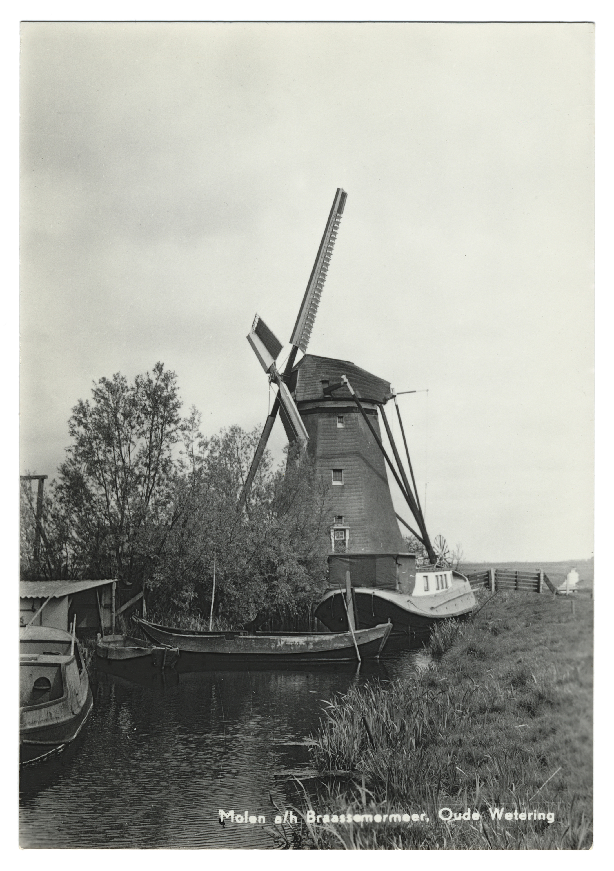 3,25 MB | '''Oude-Wetering - Molen a/h Braassemermeer''' Producent: Jospé Arnhem Uitgave: De Wetering * Gebouw: Geestmolen Het fotomateriaal mag niet commercieel worden ingezet. Bij gebruik aub het volgende vermelden: '''''Collectie kleinrondleimuiden.nl | CC BY-NC-ND 4.0''''' | 1 |