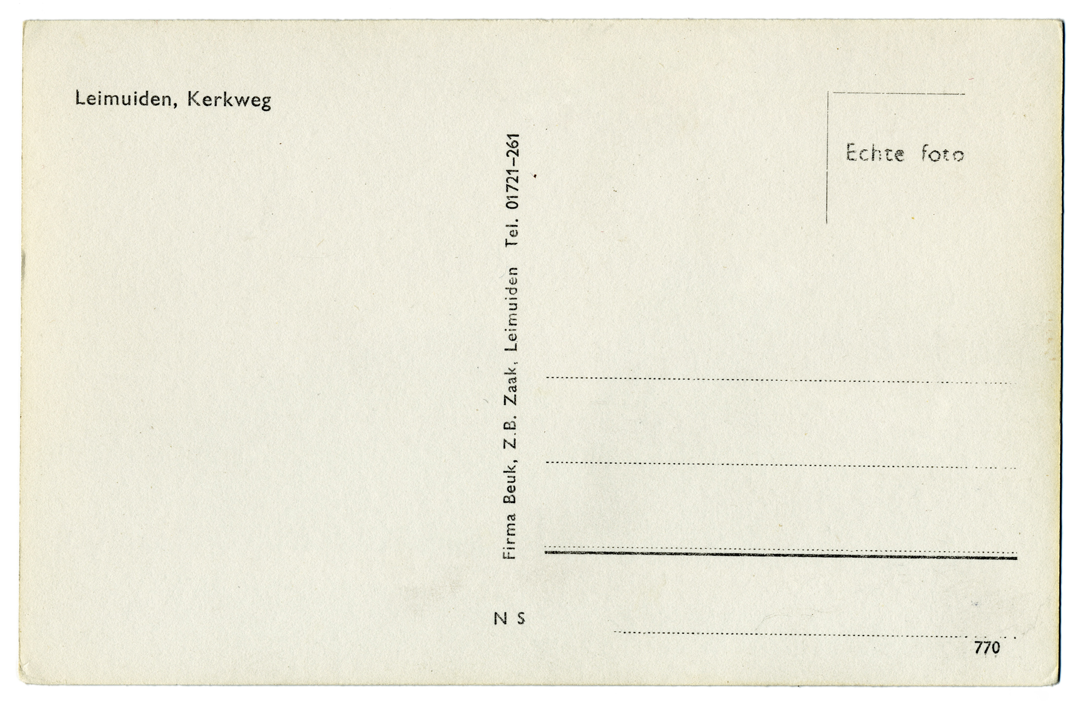 2,05 MB | == Beschrijving == '''Leimuiden - Kerklaan"''' Producent: Jospé Arnhem Uitgave: v.d. Pol * Locatie: Kerklaan Het fotomateriaal mag niet commercieel worden ingezet. Bij gebruik aub het volgende vermelden: '''''Collectie kleinrondleimuiden.nl | CC BY-NC-ND 4.0''''' | 1 |