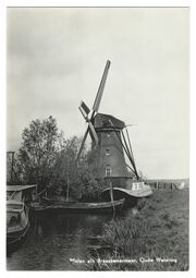 1,96 MB | '''Oude-Wetering - Molen aan het Braassemermeer''' Producent: Jospé Arnhem Uitgave: De Wetering * Locatie: Geestmolen Het fotomateriaal mag niet commercieel worden ingezet. Bij gebruik aub het volgende vermelden: '''''Collectie kleinrondleimuiden.nl | CC BY-NC-ND 4.0''''' | 1 |